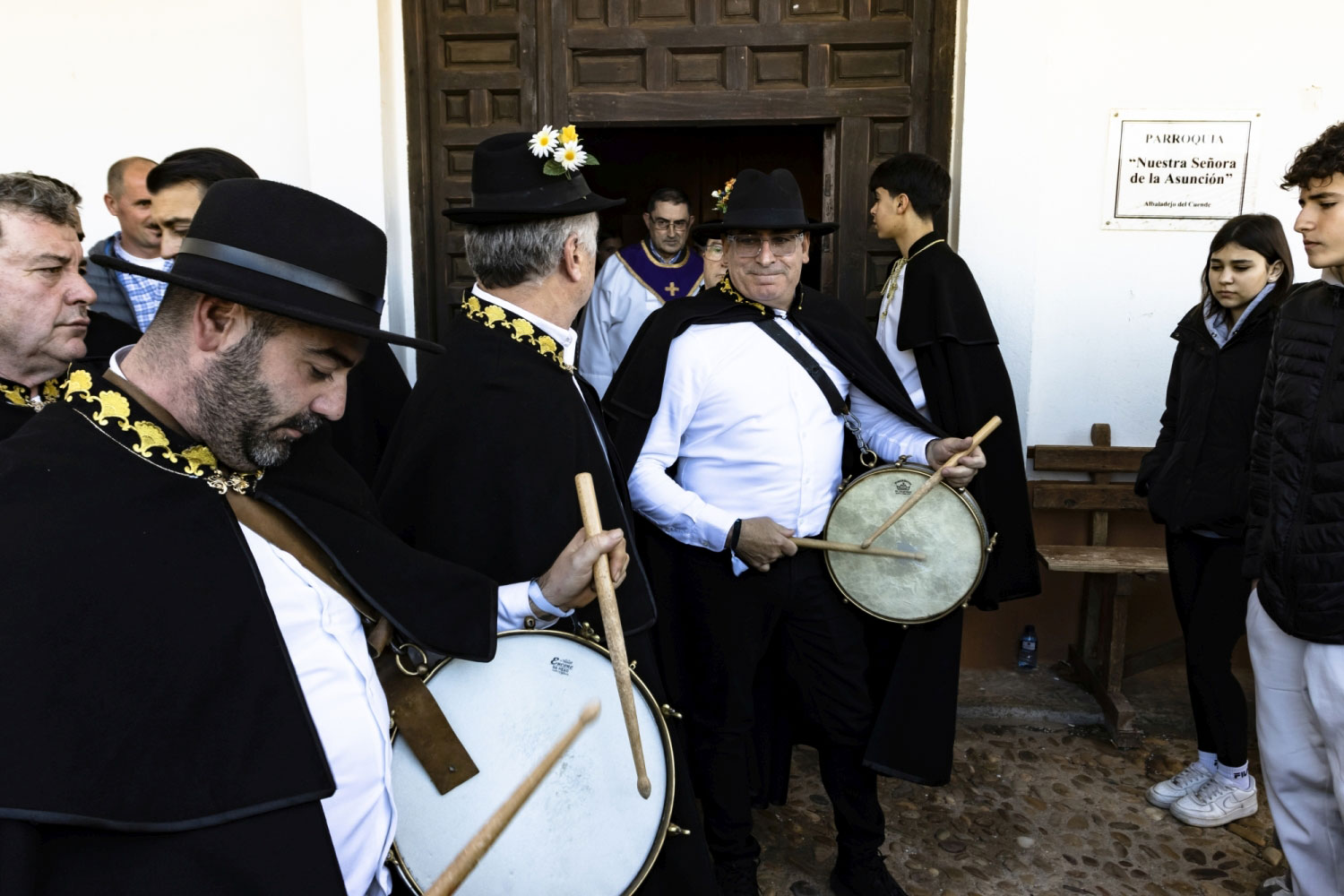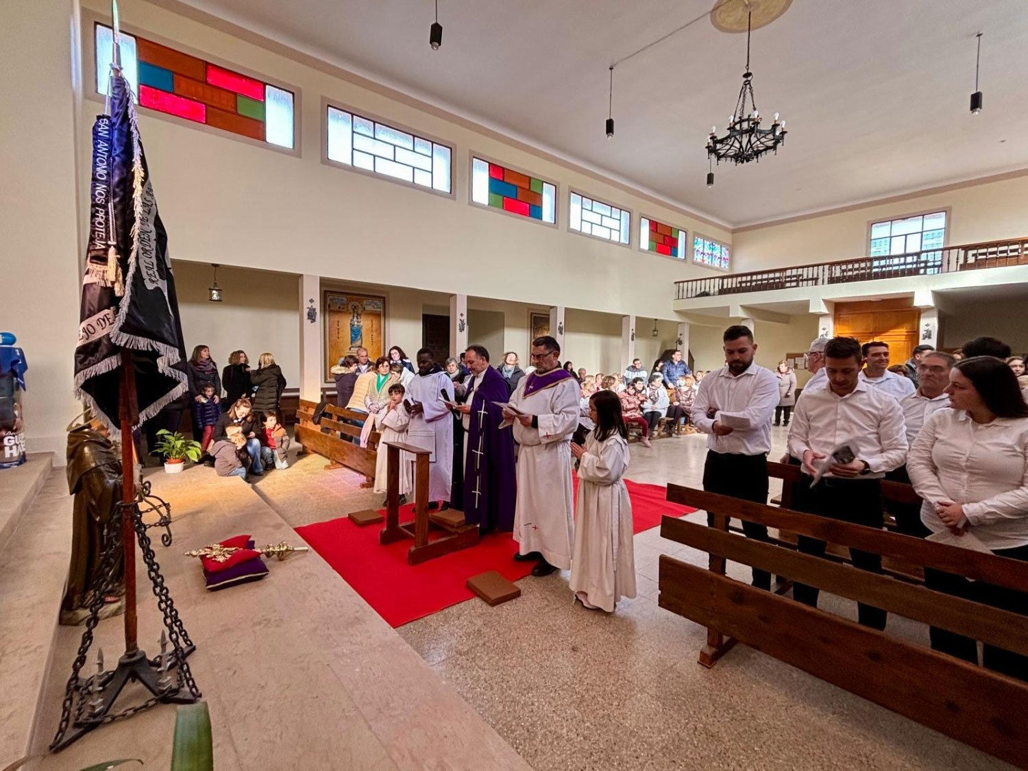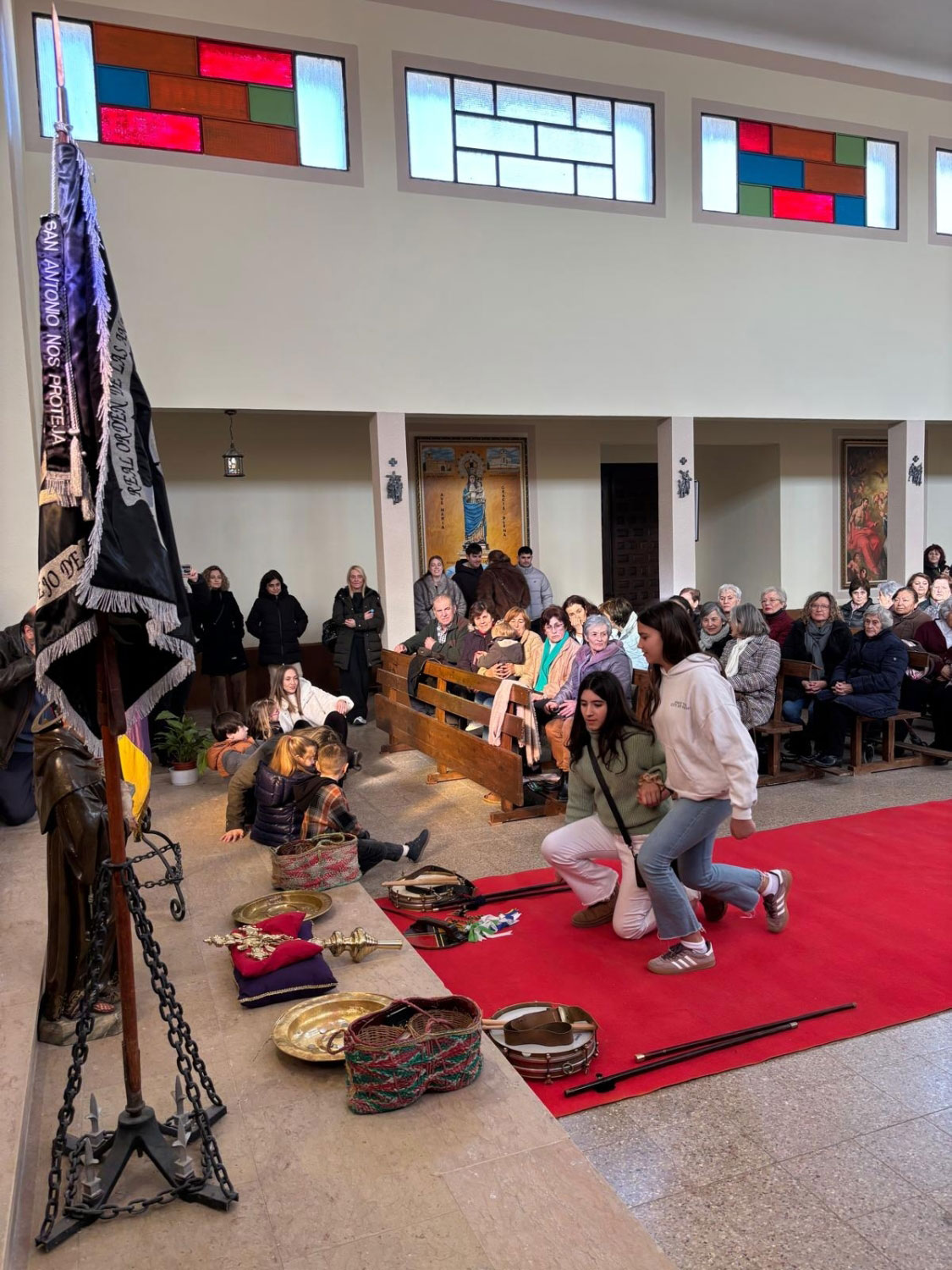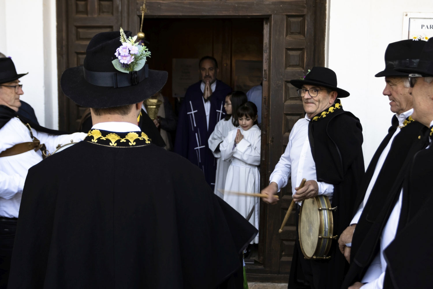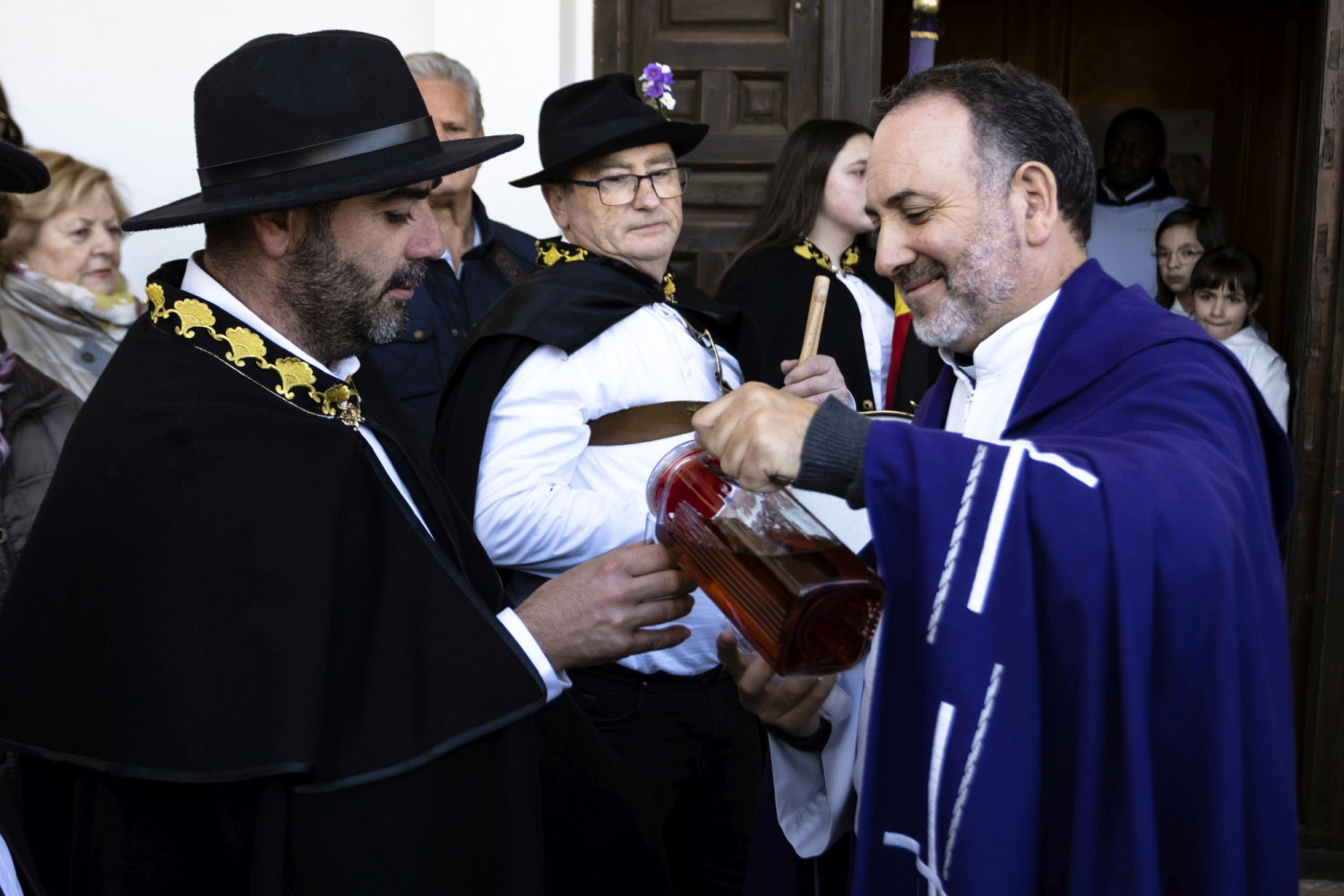 Tras dos días de festejos, el domingo a las puertas de la iglesia espera todo el pueblo. El acto, tiene gran interés, el sacerdote los recibe, y suenan las campanas, toca la ‘tercera’. Entran en la Iglesia, y delante del altar mayor esperan una cruz parroquial y la imagen de San Antonio.