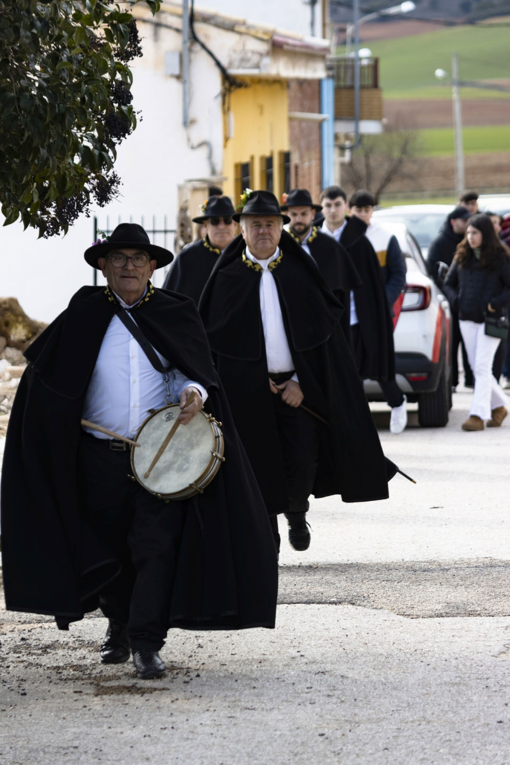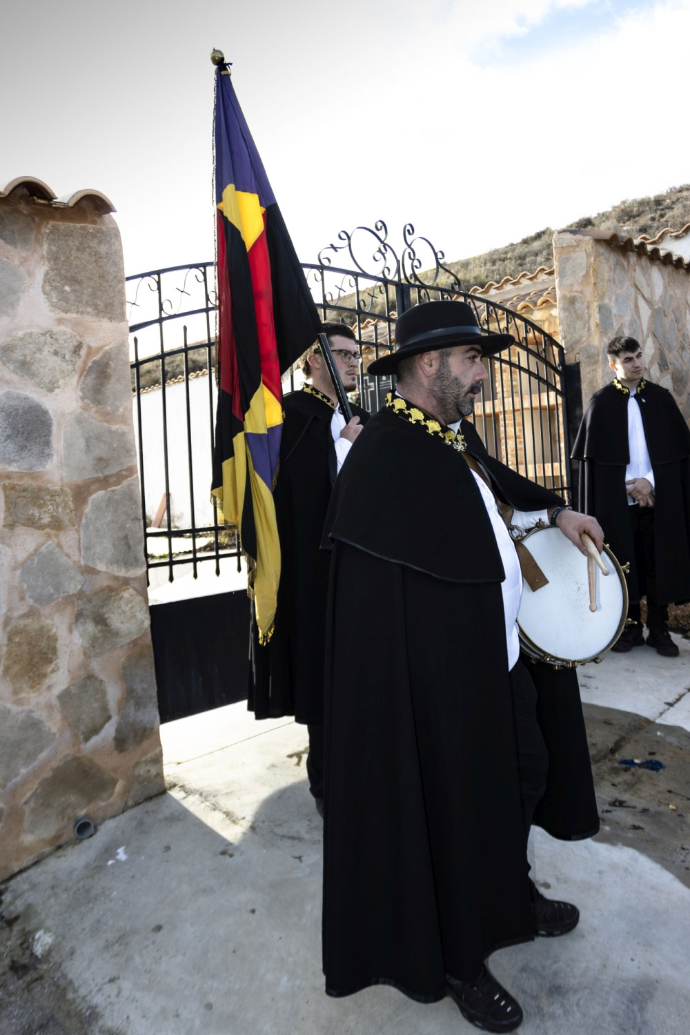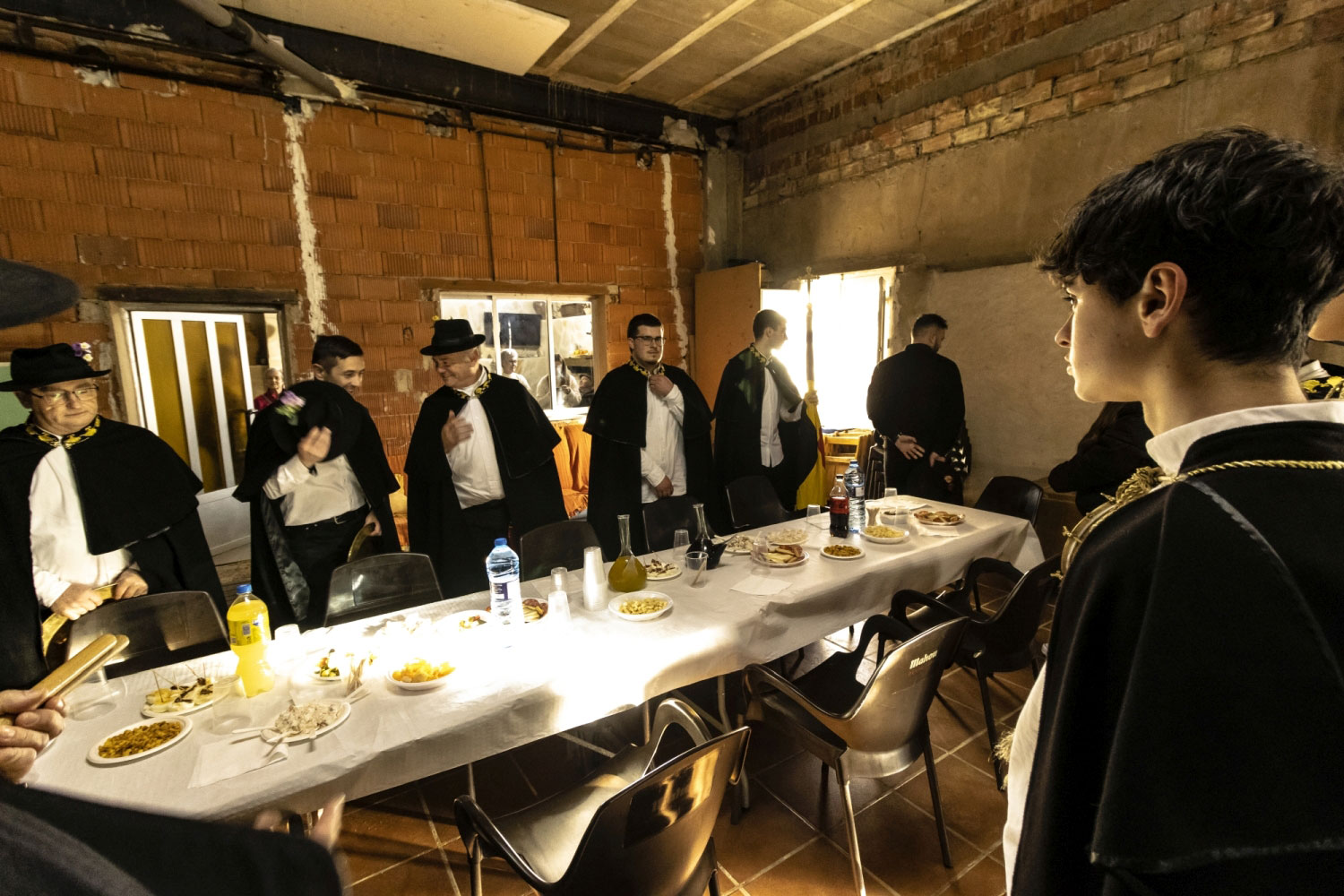 Tras este acto, y después de visitar el cementerio, se va a la última casa y última mesa. A ella está invitado todo el pueblo y se despide, con mistela, vino y cantando la canción de “la colombiana”. Todos cantan al ritmo de los tambores: “entraba la colombiana en el puerto con la capa arrastrando, diciendo viva el vinillo” (entonces toca el tambor y la gente canta “¡vuelve a beber y otro más largo!”) y para terminar y pasando el porrón se dice “deme usted el porrón con gracia y devoción”.